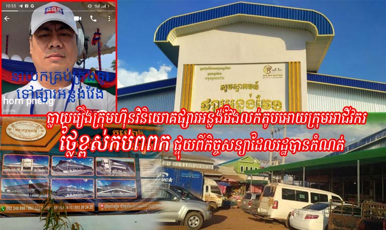 (ខេត្តឧត្តរមានជ័យ) ក្រុមហ៊ុនអានពេជសុធារ័ត្នដែលបានទទួលសិទ្ធិវិនិយោគផ្សារអន្លង់វែងដែលស្ថិតនៅភូមិអូរចិញ្ចៀនឃុំអន្លង់វែងស្រុកអន្លង់វែងខេត្តឧត្តរមានជ័យពីរាជរដ្ឋាភិបាលបច្ចុប្បន្នកំពុងតែរំលោភលើកកិច្ចសន្យាក្នុងការលក់តូបឲ្យក្រុមអាជីវករក្នុងតម្លៃខ្ពស់កប់ពពកដែលផ្ទុយពីតម្លៃដែលរដ្ឋបានកំណត់។នេះបើយោងតាមសេចក្តីរាយការណ៍កាលពីថ្ងៃទី ២៥ខែវិច្ឆិកាឆ្នាំ ២០២២។