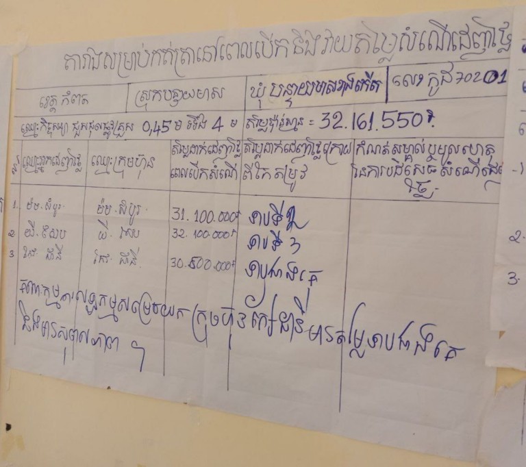 ​ប្រជាពលរដ្ឋ​ដែល​បាន​ចូលរួម​ក្នុង​ការដេញថ្លៃ​ខាងលើ បាន​លើកឡើង​ថា ដំណើរការ​ដេញថ្លៃ​នៅក្នុង​ឃុំ​សង្កាត់​ខាង​លើ គឺជា​វិធី​ចង​មុង​ដេញថ្លៃ ខ្សឹម​ខ្សាវ​ឃុបឃិត​និង​ស៊ុម​គ្រលំ​គ្នា​ជាមួយ​ក្រុមហ៊ុន​ផ្សេងៗ​ដែល​មក​ចូ​១​ល​រួម​ប្រកួតប្រជែង​ដាក់​ដេញថ្លៃ​ក្រុម​ឆ​ហ៊ុន​ទាំងនេះ មុន​នឹង​ដាក់​សំណើរ​ដេញថ្លៃ ពួកគេ ជជែក​រឿង​ទឹកតែ ជា​ថ្នូរ​មិន​អោយ​ក្រុមហ៊ុន​ទាំងនោះ​ចូល​ដាក់​ដេញថ្លៃ ។ ហើយ​ថ្លៃ​ទឹកតែ​ឃុបឃិត​ស៊ុ​គ្រលំ​គ្នា​គឺ ពួកគេ​បាន​កាត់​១០% សំរាប់​ក្រុមហ៊ុន​ដែល​ចូលមក​ធ្វើ​ការប្រកួតប្រជែង និង ១០%​ទៀត​សម្រាប់​បែងចែក​បន្ត​ទៅ​ថ្នាក់លើ នៃ គម្រោង​ថវិកា​ជាតិ​របស់​ឃុំ​សង្កាត់​។​