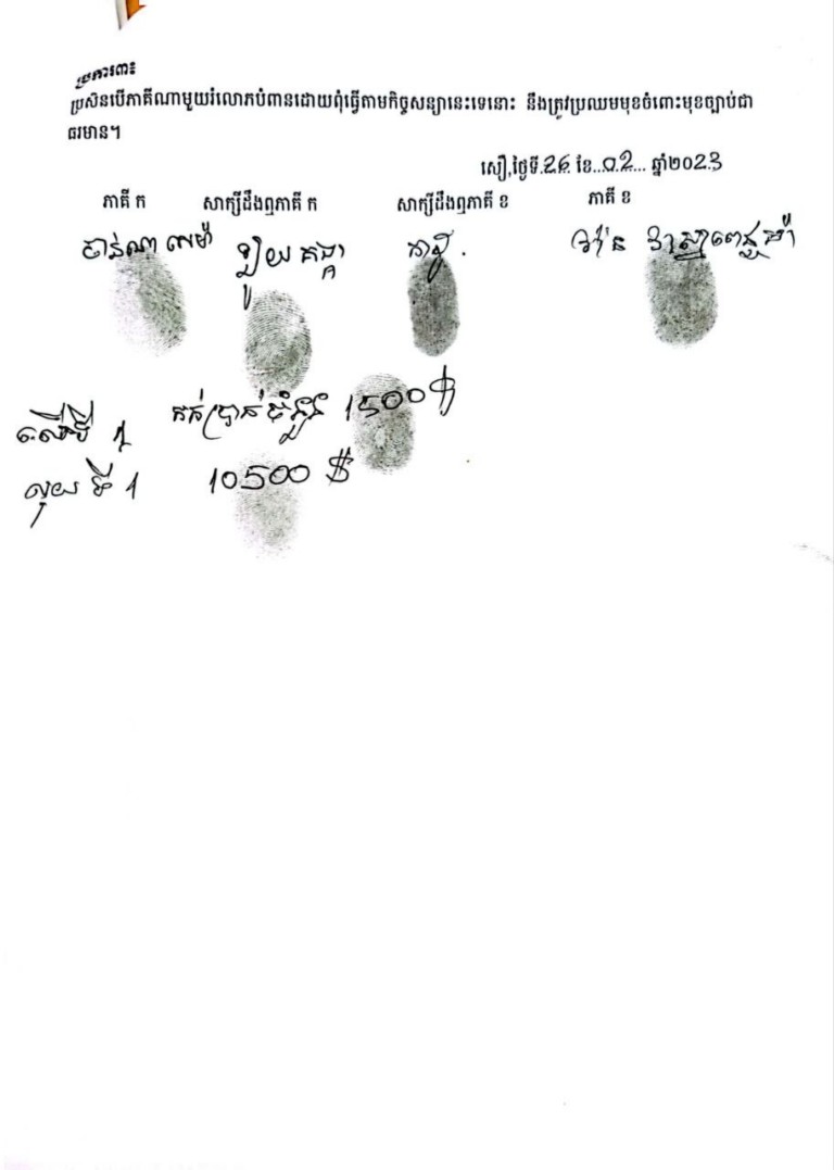 ។ ធ្វើនៅមង្គលបុរីថ្ងៃព.ហ ខែវិច្ឆិការ ឆ្នាំ២០២៣។ស្នាមមេដៃស្ដាំ