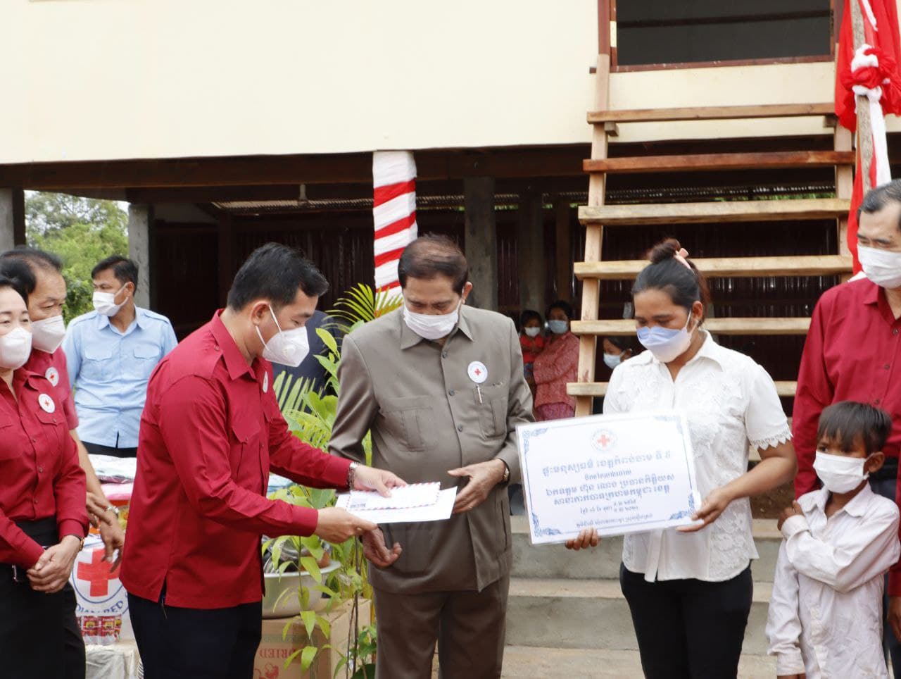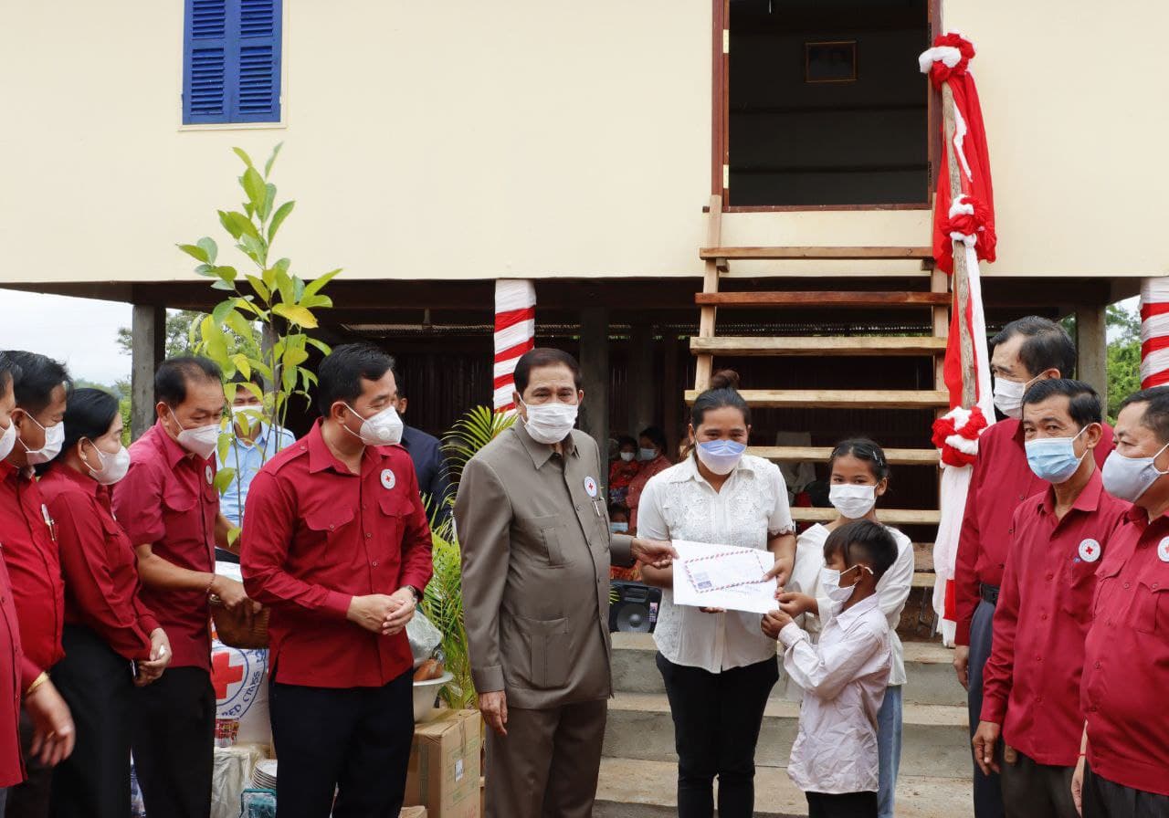 (ខេត្តកំពង់ចាម) ៖ ដោយមានការយកចិត្តទុកដាក់ពីសំណាក់ថ្នាក់ដឹកនាំក្នុងខេត្តចំពោះប្រជាពលរដ្ឋដែលរងទុក្ខលំបាក។នៅថ្ងៃទី ១៦ ខែតុលា ឆ្នាំ២០២១ នេះ ឯកឧត្តម ហ៊ុន ណេង ប្រធានកិត្តិយសសាខា និងឯកឧត្តម អ៊ុន ចាន់ដា ប្រធានគណៈកម្មាធិការសាខាកាកបាទក្រហមកម្ពុជា ខេត្តកំពង់ចាម បានអញ្ជេីញចុះប្រគល់ផ្ទះថ្មី ១ខ្នង ជូន ក្មស្ត្រីម្នាក់ ឈ្មោះ សន វី អាយុ ៣៦ឆ្នាំ ដែលជាស្រីមេម៉ាយទ័លលំបាក មានកូនប្រុសស្រីចំនួន ៦នាក់ និងចៅស្រី ១នាក់ ក្នុងបន្ទុក ស្ថិតនៅភូមិដីលើ ឃុំ ពាមកោះស្នា ស្រុកស្ទឹងត្រង់ ខេត្តកំពង់ចាម ៕